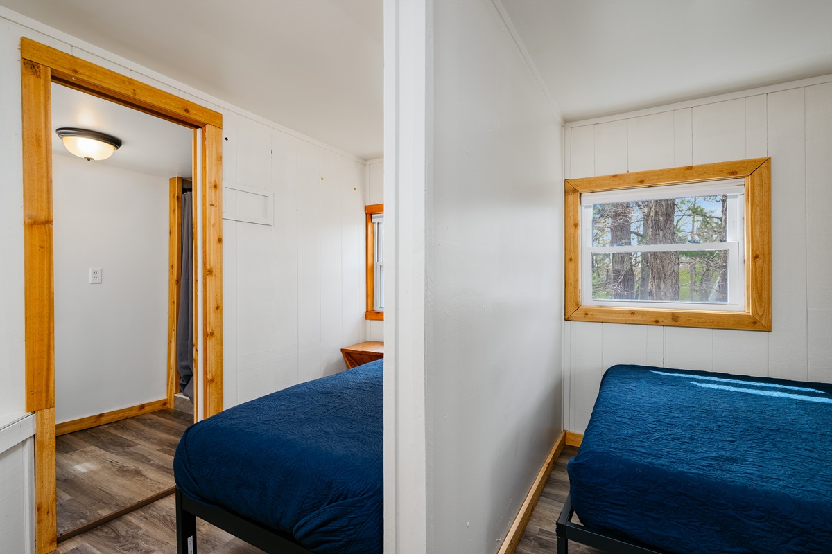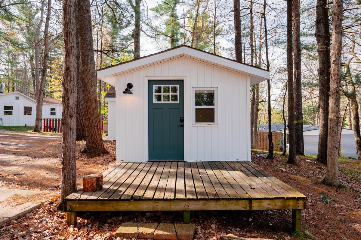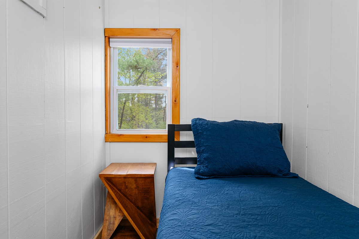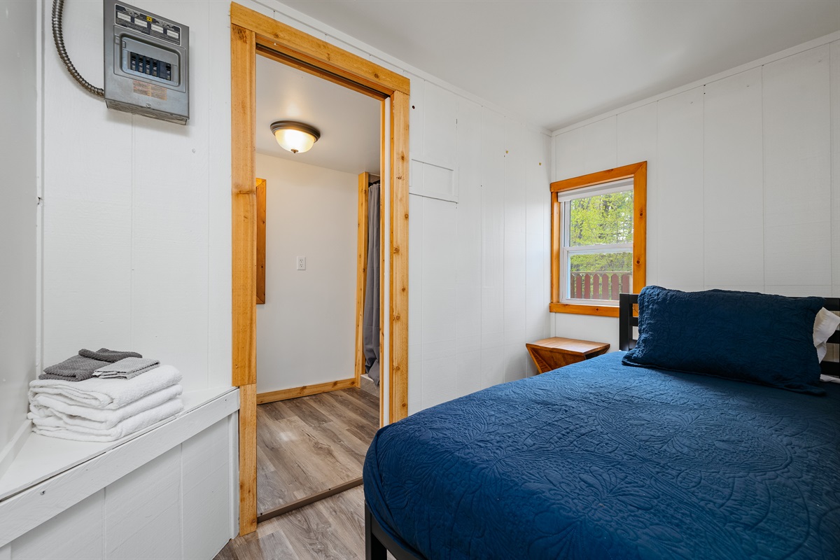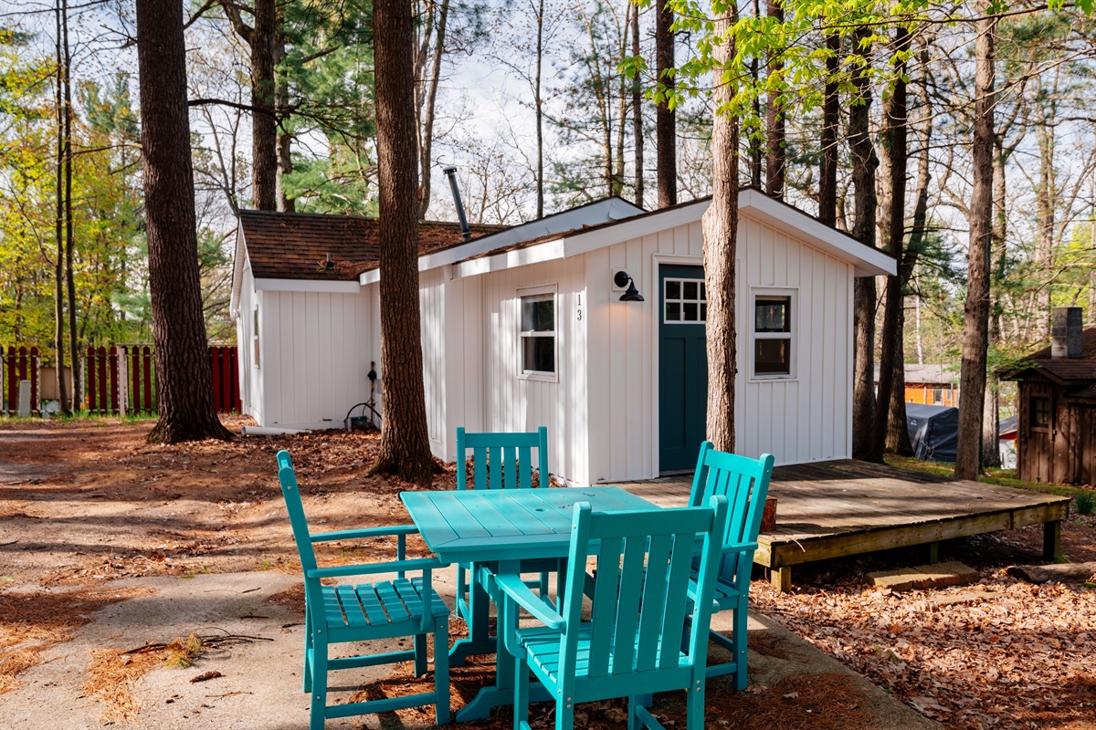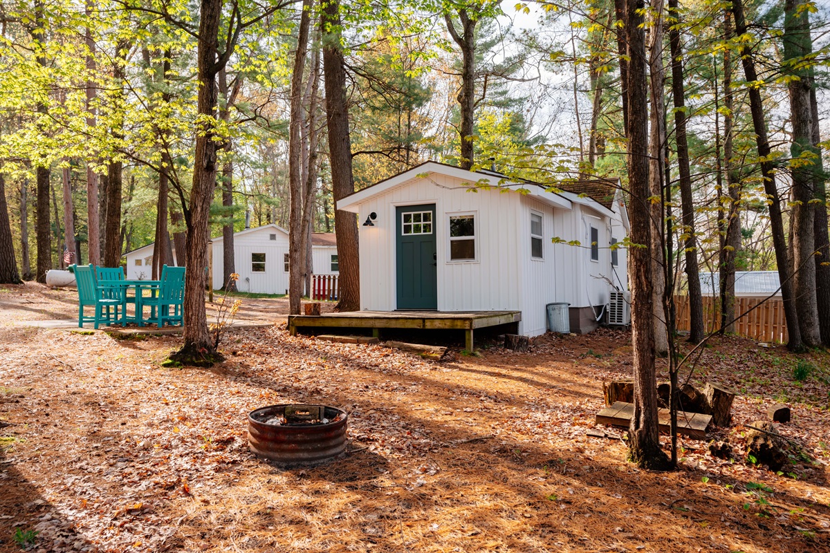 This cozy cottage on Arbutus Lake near Traverse City is the perfect retreat for those seeking a peaceful escape into nature. The rustic design and decor create a comfy atmosphere that feels like home. The cottage features plenty of windows for sunlight, a well-equipped kitchen, and a comfortable queen & twin bed. Outside, the cottage has a table and chairs that are perfect for relaxing and enjoying the scenery, as well as a shared dock that provides easy access to the lake for swimming, fishing, or boating.