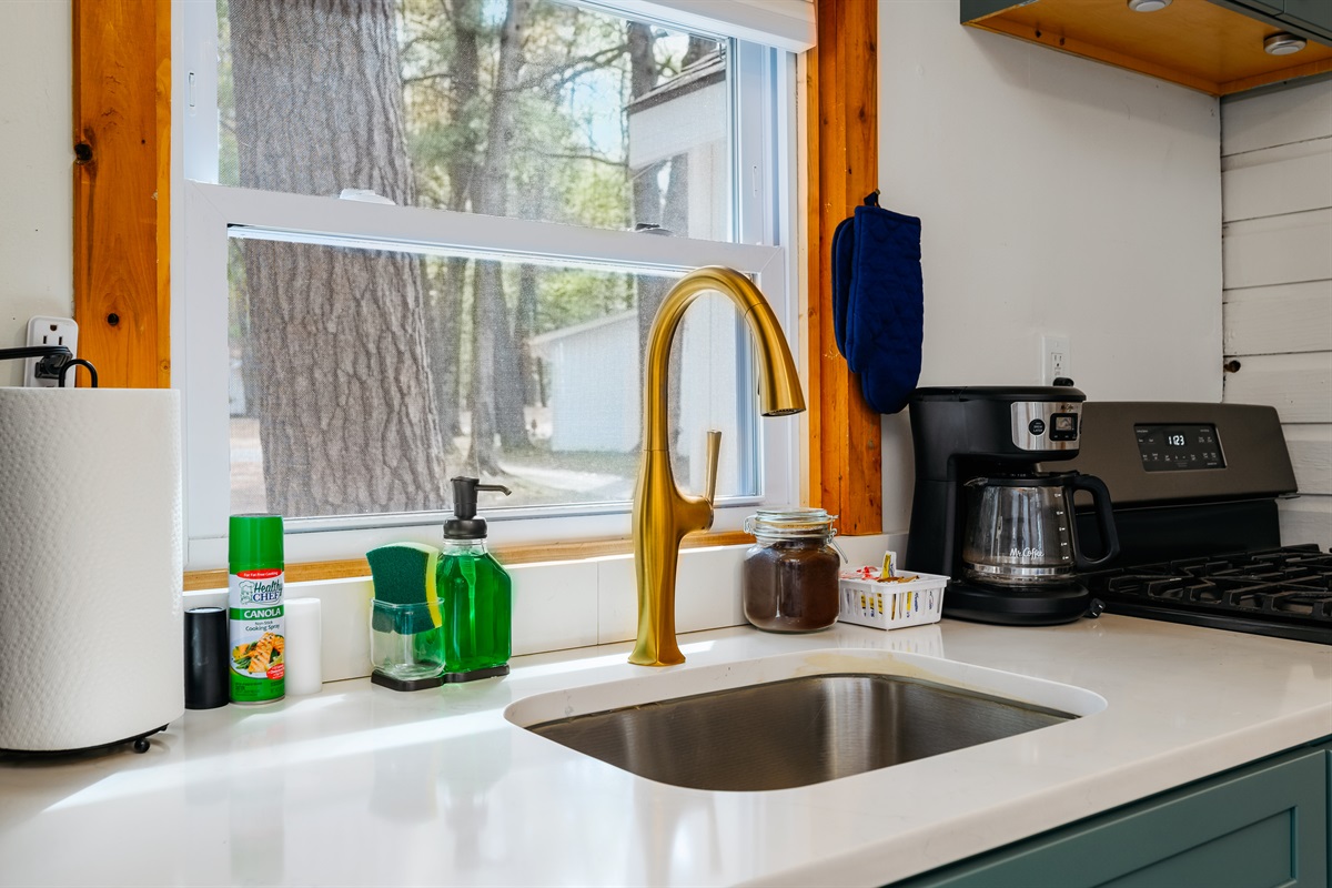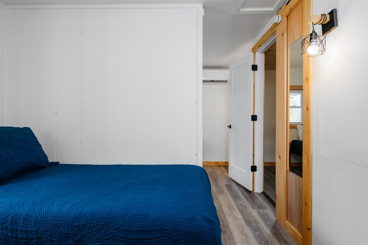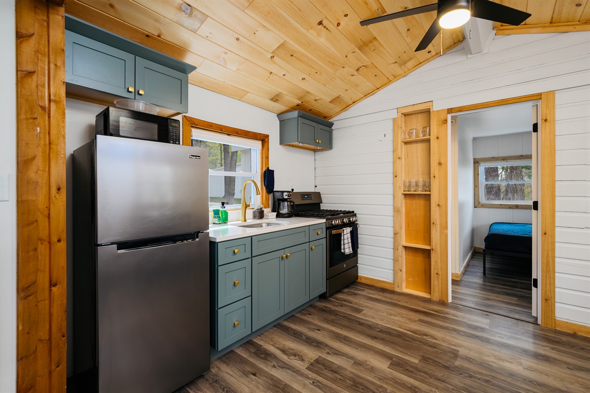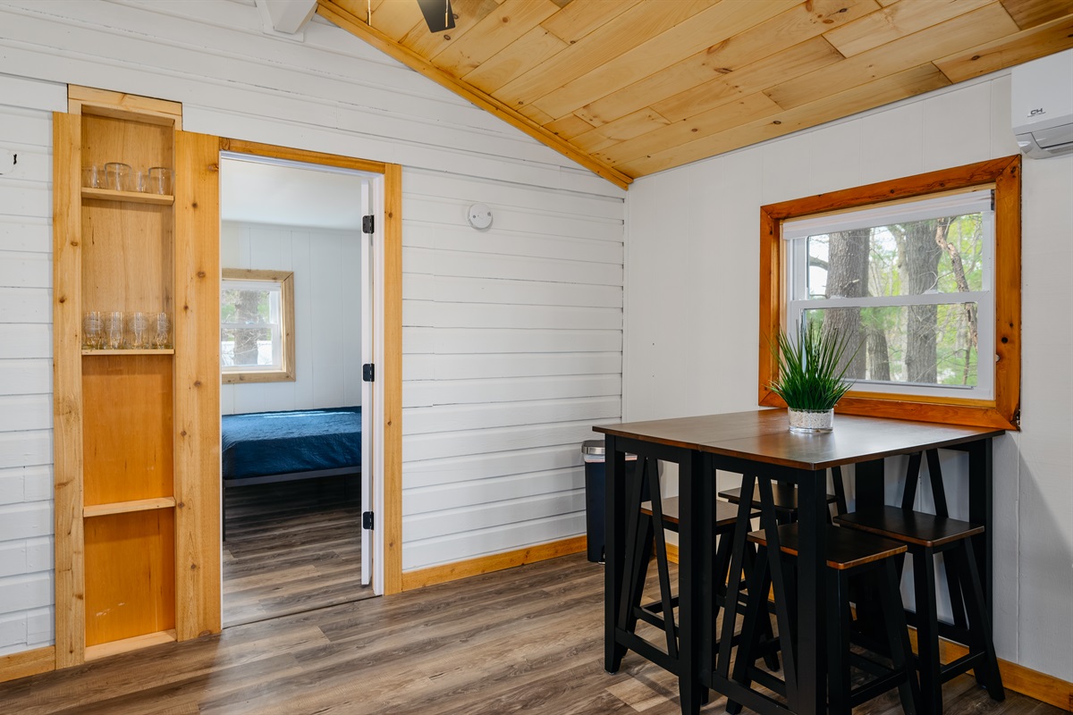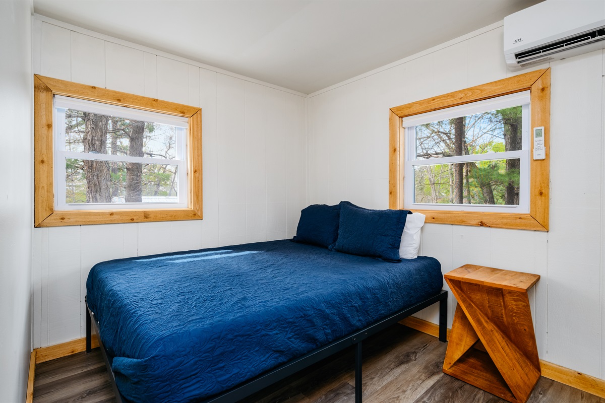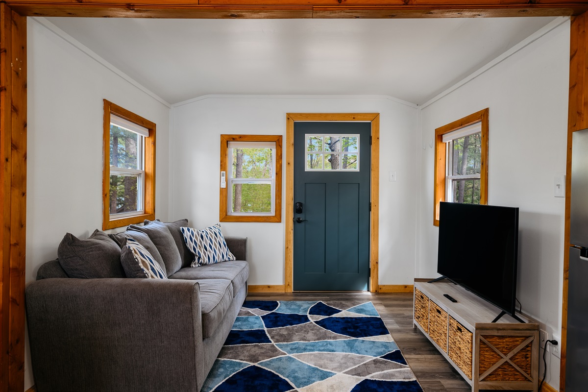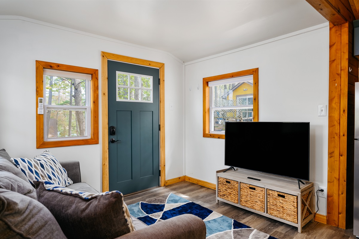 This cozy cottage on Arbutus Lake near Traverse City is the perfect retreat for those seeking a peaceful escape into nature. The rustic design and decor create a comfy atmosphere that feels like home. The cottage features plenty of windows for sunlight, a well-equipped kitchen, and a comfortable queen & twin bed. Outside, the cottage has a table and chairs that are perfect for relaxing and enjoying the scenery, as well as a shared dock that provides easy access to the lake for swimming, fishing, or boating.