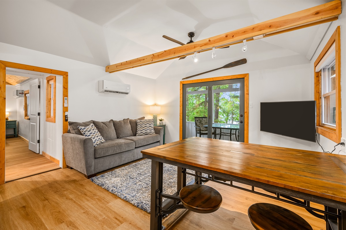Located just 12 miles south of Traverse City on beautiful Arbutus Lake. Family and pet friendly environment. This single level cabin has 2 bedrooms and sleeps 4. The cabin has been freshly remodeled throughout. Central air and WiFi. All linens and towels are provided. The private porch overlooks the lake and beach area. There are also other cottages on the property.