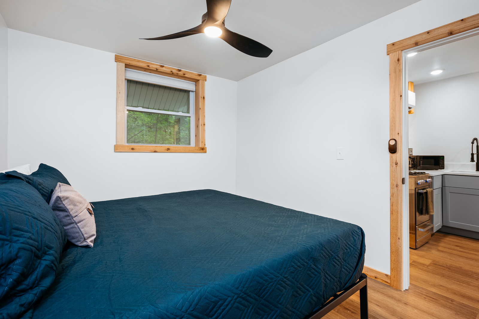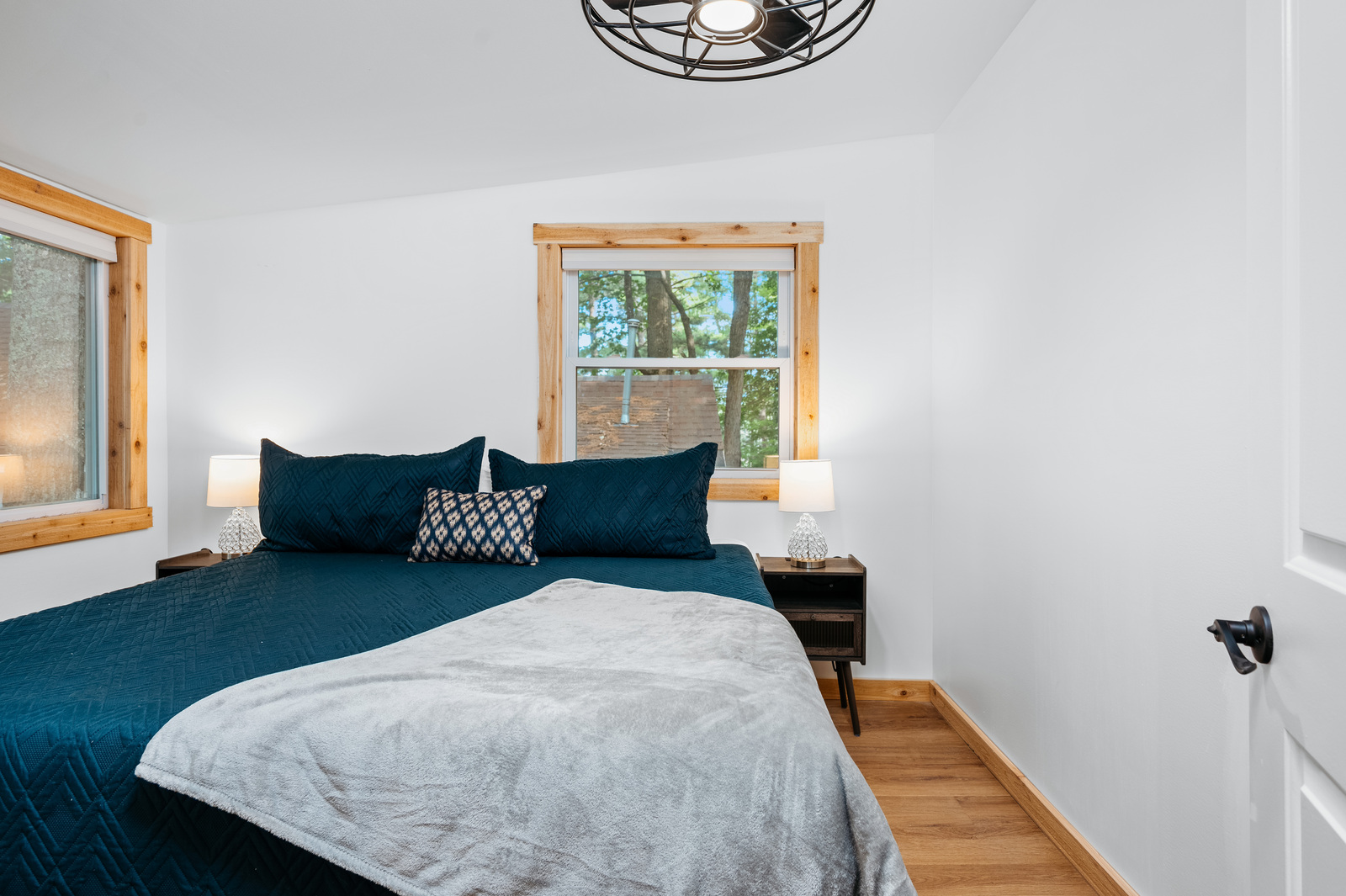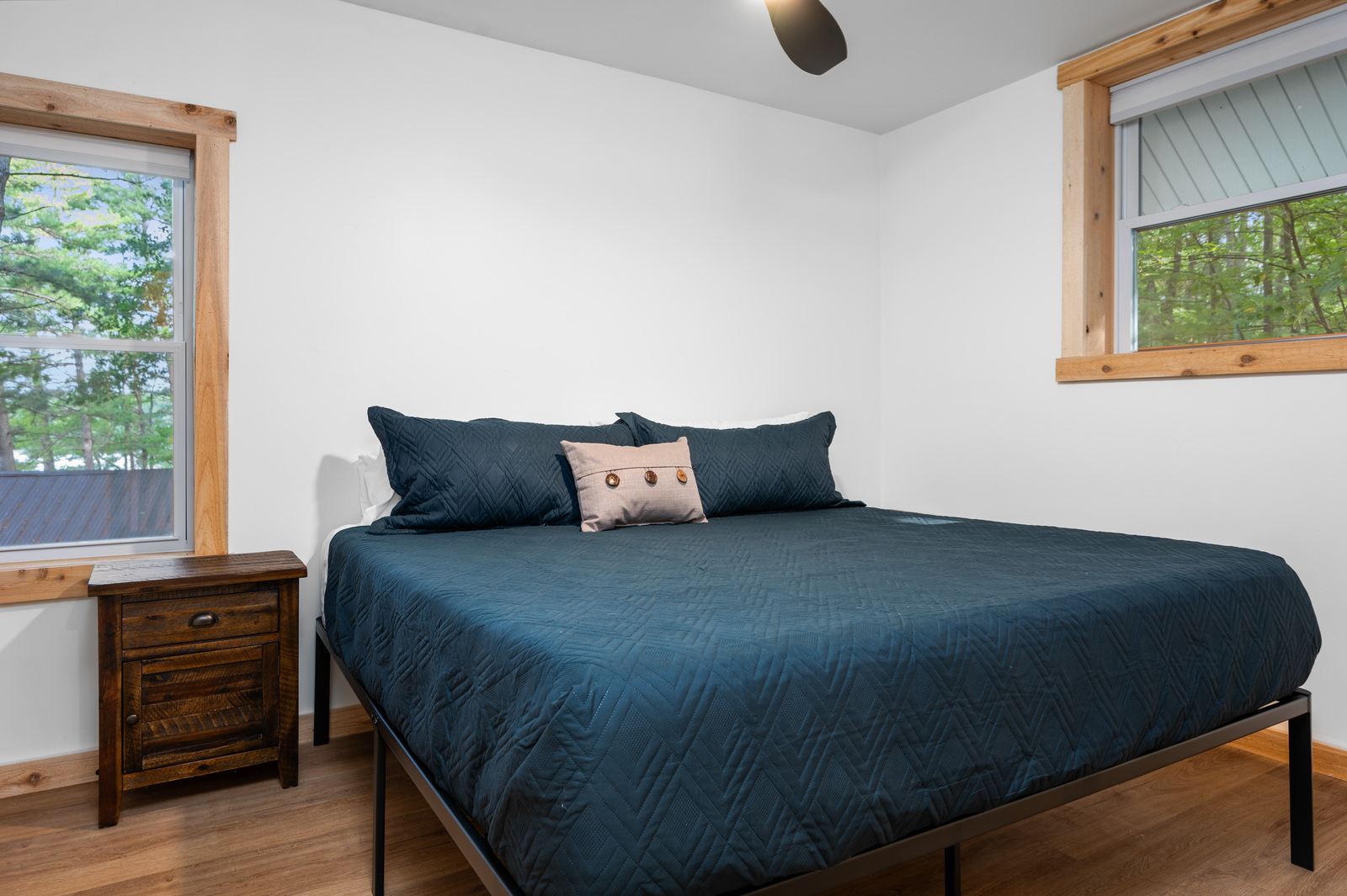 Located just 12 miles south of downtown Traverse City on beautiful Arbutus Lake. Family and pet friendly environment. This single level cabin is spacious enough to sleep 4. The newly remodeled kitchen features a refrigerator, microwave, coffee maker, toaster, pots and pans, dishes, and utensils. Central air and WiFi. There are two bedrooms and each has a king size bed. All linens and towels are provided. There are also other cottages on the property who share the outdoor amenities. A 2022 Bennington pontoon boat is available to rent. If interested, please call or text us to check availability.